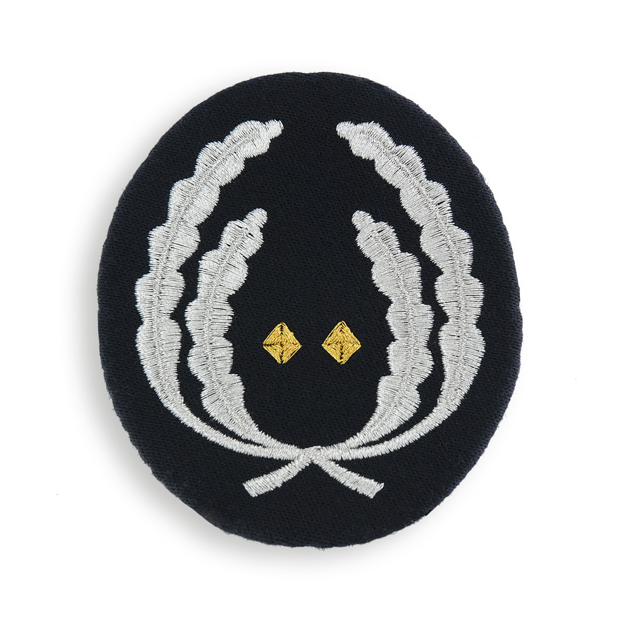 L'insigne brodé pour casquette est destiné à être positionné sur les coiffures portées en tenue d'honneur. Il est fixé par deux boutons pression.