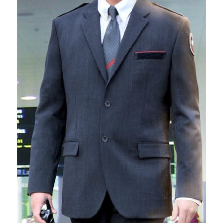 Blazer homme à la coupe droite, fermé par deux boutons. À l'intérieur, la doublure est soigneusement bordée d'un liseré rouge, ajoutant une touche de couleur discrète. Il présente un col tailleur, avec un feutre sous le col pour plus de structure et de confort.