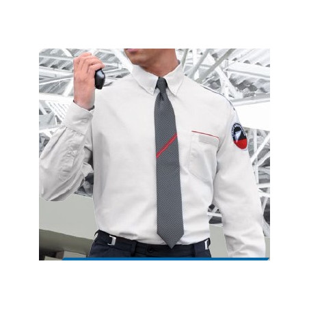 Chemise homme à la coupe droite, dotée d’une poche poitrine plaquée sur le côté gauche, ornée d’un passepoil rouge qui ajoute une touche de distinction.