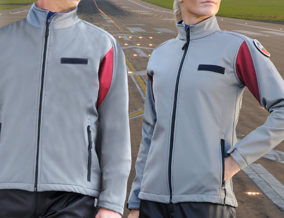 Il présente des empiècements rouges sous les emmanchures et sur le bas des manches, ajoutant un contraste dynamique. L'identification est discrète avec un porte-écusson sur le haut de la manche gauche et un autre sur la poitrine gauche.