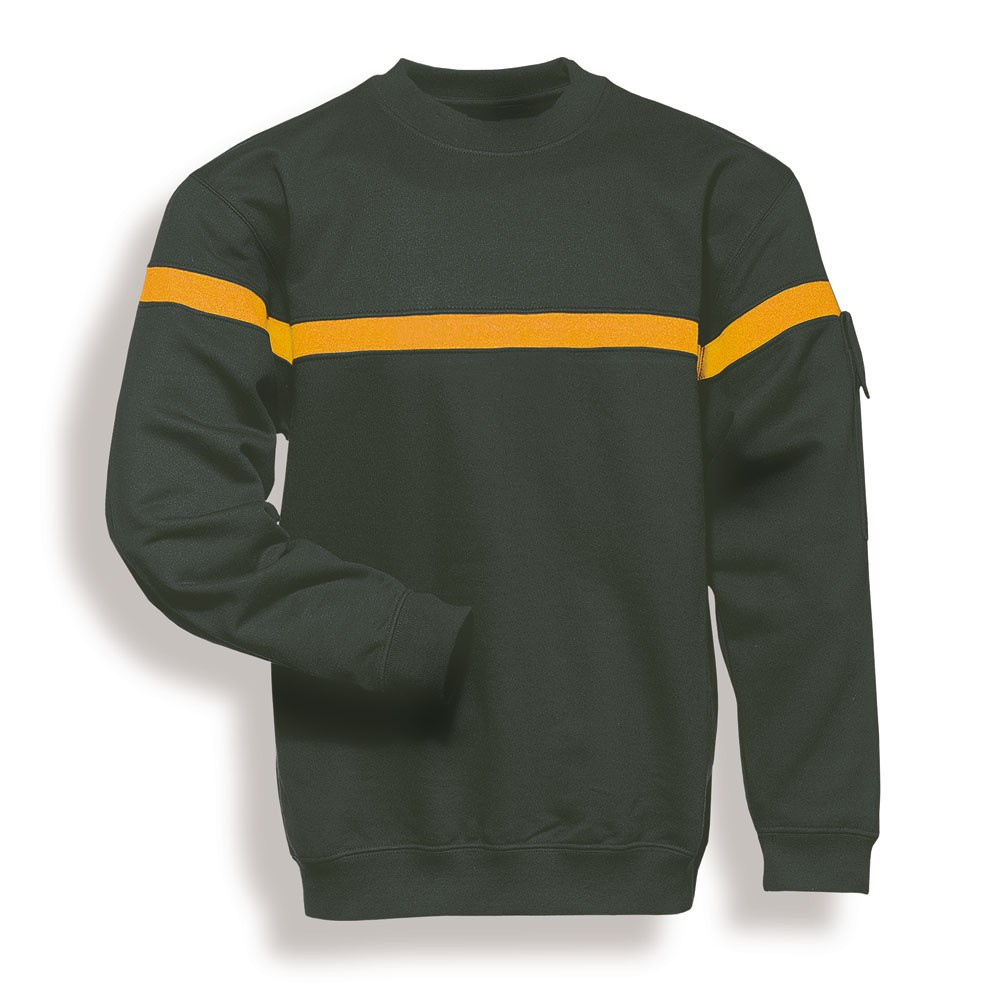 Le sweat possède une poche stylo sur la manche gauche. Les 2 modèles bleu marine ont également un velcro au centre de la poitrine sous la bande.